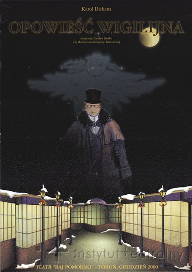 Premiera spektaklu odbyła się w 2000 roku i od tego czasu spektakl cieszy się niezmiennym uznaniem toruńskiej publiczności. Wyreżyserował go Czesław Sieńko. Scenografia autorstwa Joanny Braun buduje nastrój białych świąt, które podtrzymują angielskie kolędy śpiewane przez aktorów w strojach z epoki.
